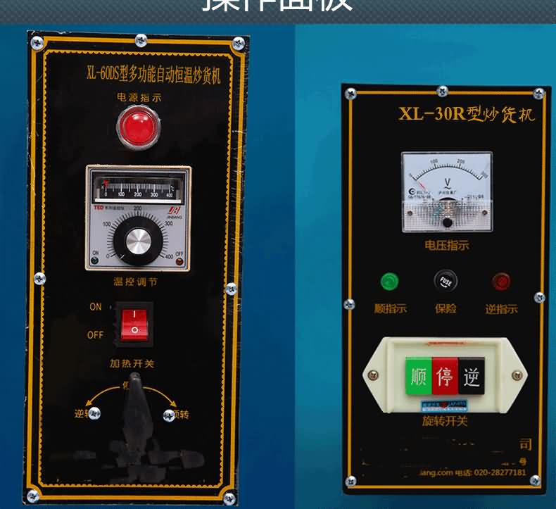 3.用氣加熱的炒貨機配有節能灶頭,可調節火力大小。用電加熱的炒貨機帶有溫控儀,可任意調節溫度。