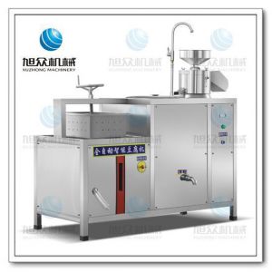 旭眾智能豆腐機(jī)專業(yè)生產(chǎn)數(shù)種豆?jié){制品,穩(wěn)定高效,采用磨漿分離機(jī)和煮漿機(jī),出品率高于其它設(shè)備,擁有自動(dòng)控制系統(tǒng),還增加數(shù)碼溫度控制儀,對(duì)煮漿隨時(shí)進(jìn)行監(jiān)控,同時(shí)對(duì)不同產(chǎn)品所需溫度自行設(shè)定,當(dāng)煮漿達(dá)到設(shè)定溫度時(shí),具有自動(dòng)提示及報(bào)警功能;整機(jī)采用不銹鋼材質(zhì)制作,質(zhì)量卓越,占地面積小,安裝簡(jiǎn)單,工藝先進(jìn),一臺(tái)設(shè)備只需一人操作,省時(shí)、省力、省工。