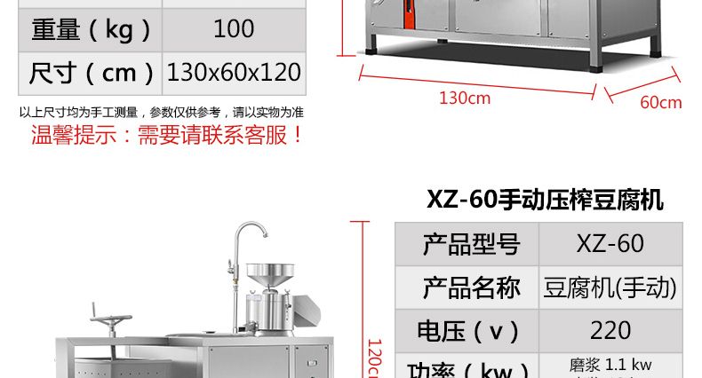 型號(hào) | XZ-60豆腐機(jī) | XZ-61豆腐機(jī) | XZ-100豆腐機(jī) |