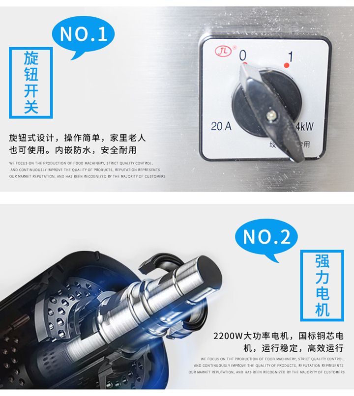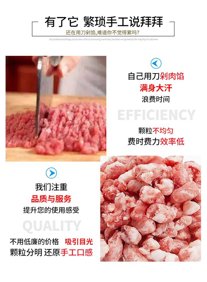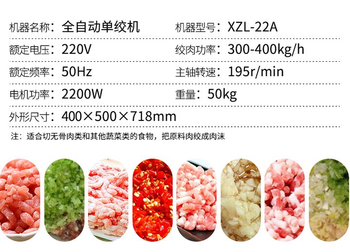 XZL-22A絞肉機(jī)吸取同行之優(yōu)點(diǎn),改進(jìn)新型絞肉切肉機(jī)械,它能切豬肉、羊肉、牛肉、魚及其它各種肉類、所切肉片厚度適中切片效率高,是餐廳、賓館、酒樓、單位食堂等絞肉切肉的理想機(jī)械,該機(jī)外形獨(dú)特,操作方便,維修簡(jiǎn)單,工作效率高,在同行業(yè)中處領(lǐng)先地位,與食物接觸部分均采用不銹鋼制造符合食品衛(wèi)生標(biāo)準(zhǔn)。