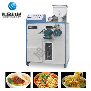 改進型米粉、米線專用機,裝有自動溫空裝置,整個生產過程設備均在恒溫狀態下運行,自動化程度高,操作簡單,l人即可生產。可生產米粉、米線、桂林米粉、過橋米線、年糕等產品。各種形狀都可生產(圓、扁),加工食品外表光滑,厚薄、寬窄、粗細均勻可調,筋軟適度,有彈性,口感柔軟、味道純正。