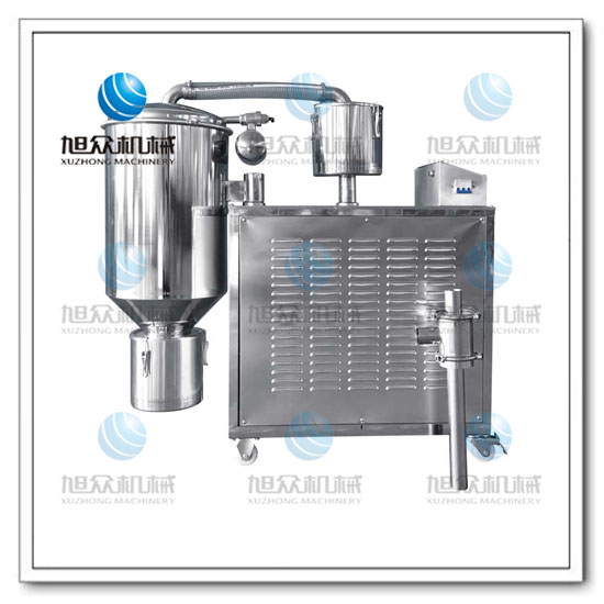 旭眾機械生產的真空上料機是在廣泛吸收國外同類產品的基礎上開發研制的新產品,目前它是國內技術先進、理想、完善的粉狀料、粒狀料、粉粒料混合料的真空輸送設備。它能自動地將各種物料輸送到包裝機、注塑機、粉碎機等設備的料斗中,也能直接把混合的物料輸送到混合機(如V型混合機、二維混合機、三維混合機等)中,減輕了工人勞動強度,完善了加料時粉塵外溢等問題,是制藥廠、食品廠通過GMP認證、促進清潔、文明生產的不錯設備。