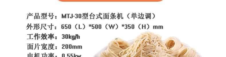 | 型號 | MTJ-30型臺式面條機(單邊調) |