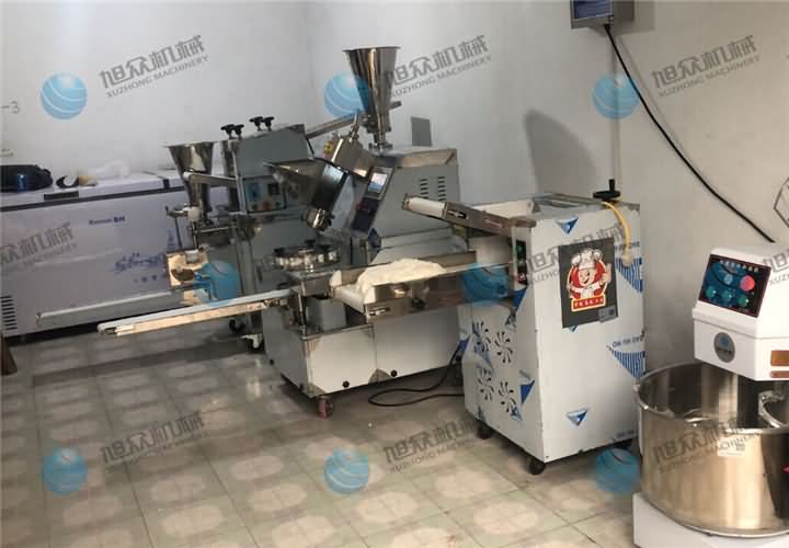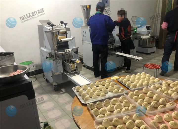 雙11活動(dòng)已完美收官,客戶訂購的包子機(jī)、餃子機(jī)、和面機(jī)、壓面機(jī)等配套設(shè)備,貨到的速度也非常的快,于是安排師傅上門去調(diào)試,因?yàn)橛袃膳_(tái)機(jī)器,為了讓客戶對機(jī)器的操作更熟練,于是安排了第一天先學(xué)習(xí)操作XZ-87包子機(jī)做包子,他們的包子主要做的是流沙包: