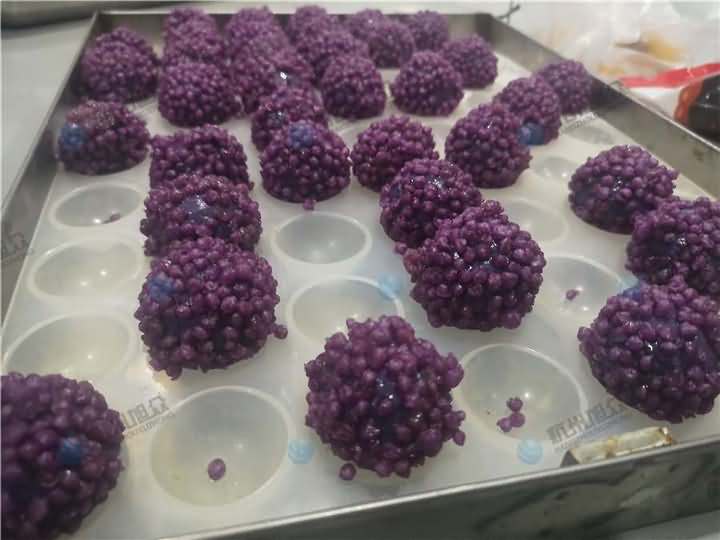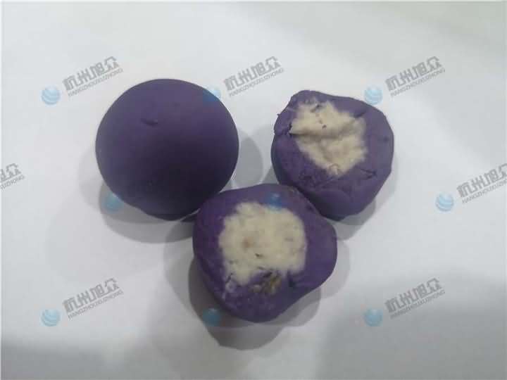 老客戶再次咨詢做紫薯球設(shè)備,之前有購買的糍粑機(jī)不適合生產(chǎn)紫薯球,所以知道想看看湯圓機(jī)做出來的紫薯球效果,物料自行準(zhǔn)備:紫薯面團(tuán)、香芋餡料、雞蛋、各種雜糧米。