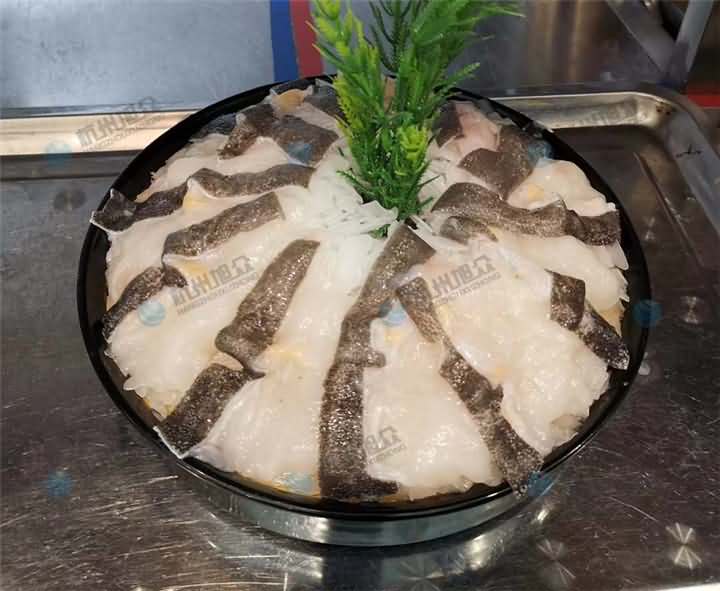 魚片加工廠專用大型切魚片機,切片厚度在2.3mm以上的規格都可定做,標配3mm的厚度,這不前段時間購買大型切魚片機切中華鱘、娃娃魚的客戶發了使用反饋,切片效果遠比人工切片快多了,有了切魚片機切片效率提高了,也接了很多酒店的訂單,每天大批量的切片好后再配送,這魚片機買的不虧!