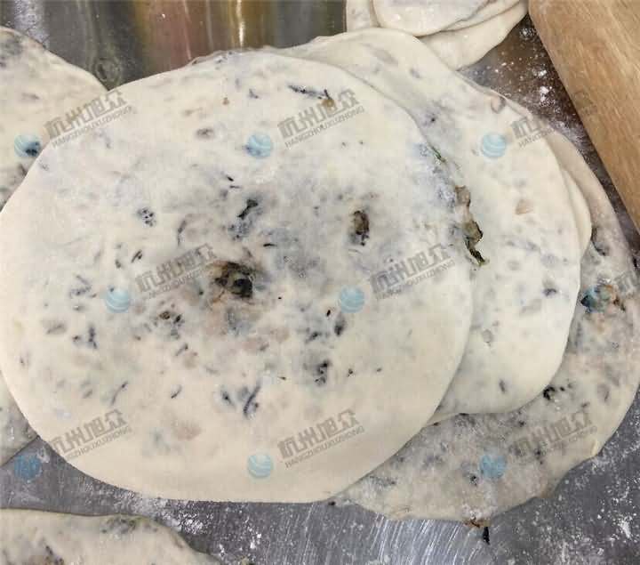 包子機能做縉云燒餅嗎?能做也不能做,該怎么說呢,包子機可以等份切成一個個包餡成品后,再人工將它反復搟面壓成餅狀,有人就覺得到最后反正都是人工來做的,那有必要買包子機嗎?這個需不需要包子機看客戶需求,客戶主要做燒餅的,招了很多員工,有新員工也有老員工,老員工有經驗一手就能包出差不多克重的燒餅,而新員工不行,得一邊拿克重稱著看再反復壓餅,于是便想用機器等份的包餡好成型,再讓員工一個個去搟壓這樣效率明顯要快很多。于是客戶帶著自己的燒餅爐及物料來到旭眾機械廠: