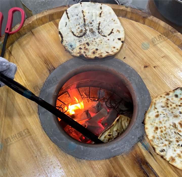 爐子客戶自己準備的,燒餅面皮餡料也是客戶自己準備帶過來,現場用SZ-612包子機制作成型后,再用搟面杖將面團搟成薄餅后拿去烘烤即可,歡迎來電400-885-2117咨詢包子機!