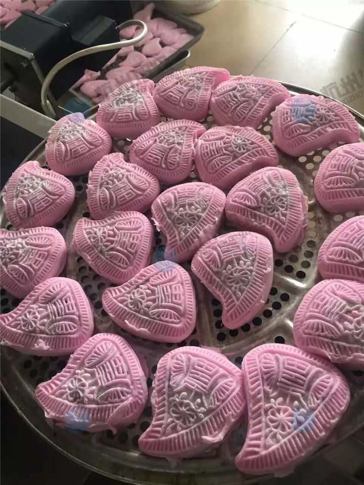紅桃粿食品廠還在為招不到員工而煩惱嗎?旭眾月餅機流水線輕松解決員工問題,從包餡到印模再到自動擺盤,全自動化生產紅桃粿,有了月餅機流水線紅桃粿的產量也跟上來了,這才是食品廠老板們開廠賺錢的正確操作方式,那么我們先看看月餅機做的紅桃粿: