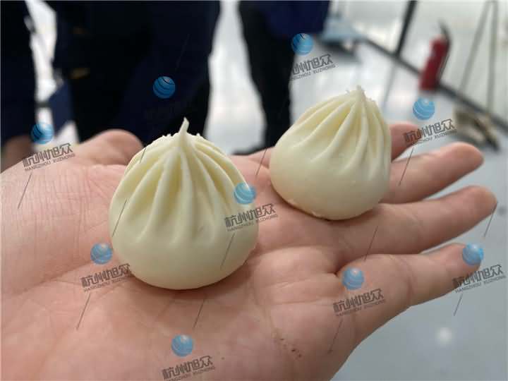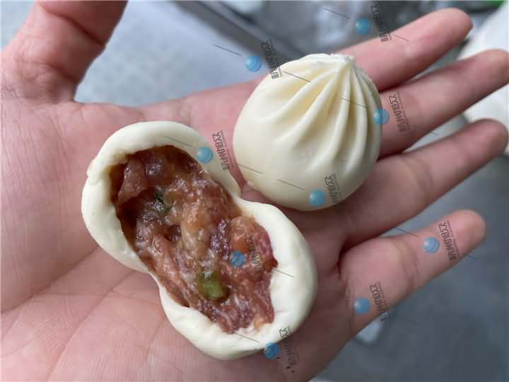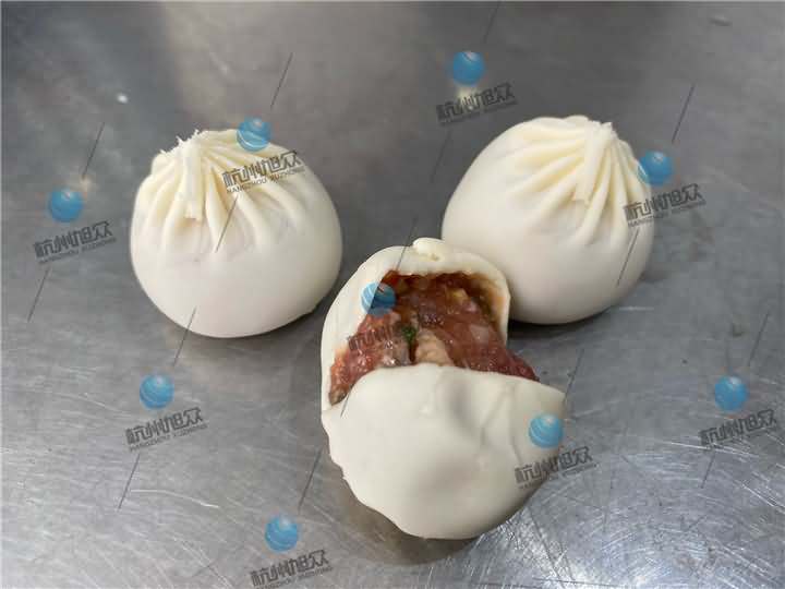 兩組包子成品都是由XZ-87全自動(dòng)包子機(jī)生產(chǎn)的14克和18克左右的小籠包,圖一包子皮薄,圖二看起來(lái)明顯比圖一的面皮要厚一點(diǎn),各個(gè)生產(chǎn)的包子面皮比例均勻,不切開在沒(méi)有蒸之前是看不出有什么區(qū)別,等兩組都做好后,圖二因?yàn)槭前l(fā)面小籠包,所以需要拿去醒發(fā)后再蒸熟,而圖一死面小籠包直接拿去蒸七八分鐘就差不多就好了。想了解包子機(jī)撥打4008852117預(yù)約上門考察!