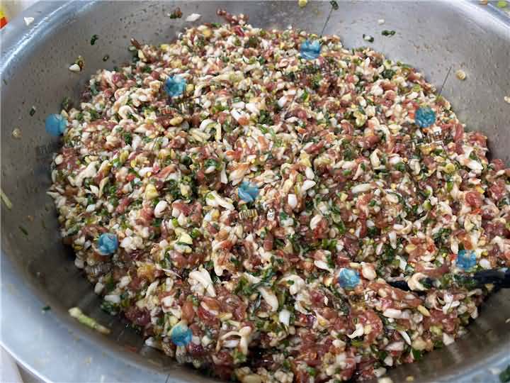 以往來考察包子機(jī)的客戶一般是2-3人便可,而今日來考察包子機(jī)的這波客戶至少也得十人,而且他們考察的包子機(jī)的方式特別的有儀式感,全員都行動起來了。可以說小編我跟拍了一個上午加下午一點時間才終于結(jié)束,那么我就簡單說下早上試的第一次,主要考察試機(jī)設(shè)備XZ-290AS卷面式包子機(jī),先拌餡料,蔥花豬肉酸加些調(diào)味料紅椒等等,包子做好后也蒸出來嘗了下口感,看著挺清淡的肉包子,等你嘗了兩口后就會發(fā)現(xiàn)這包子挺辣的。