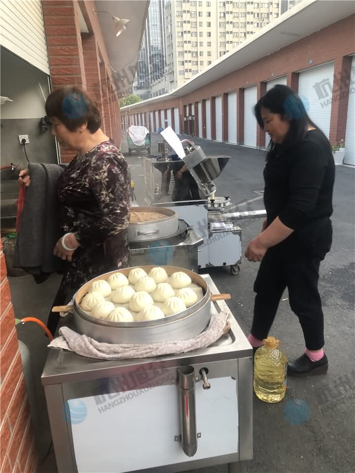剛開始開包子鋪創業-選擇全自動包子機合適嗎?當然合適,不過包子機廠家要選對。李老板前段時間帶著兒子兒媳來到旭眾機械廠(杭州濱江區楚天路299號旭眾機械)考察包子機,因為他年輕時候也有在做包子,每天在家閑著沒事做,就打算開包子鋪給自己找找事,于是在一條商業小吃街租了個門店,而后發現人手不足會導致包子產量跟不上銷量,現在招工難,薪資給了人家不想做,給高了其實自己也沒賺多少錢,特別是現在才剛開始做,就要開始投入人工成本費用,于是便想到購買全自動包子機來代替人工自動包包子。