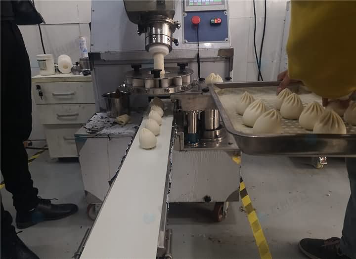 有人擔心包子機做出來的包子沒有餡料?別廠家的包子機我不清楚,但是旭眾包子機包出來的包子各個飽滿,當然這個也得根據客戶皮餡比例的要求來生產,包子機從15-120克包子只需跟換模具便可制作,不相信?可電話4008852217預約現場直觀包子機做包子效果哦!