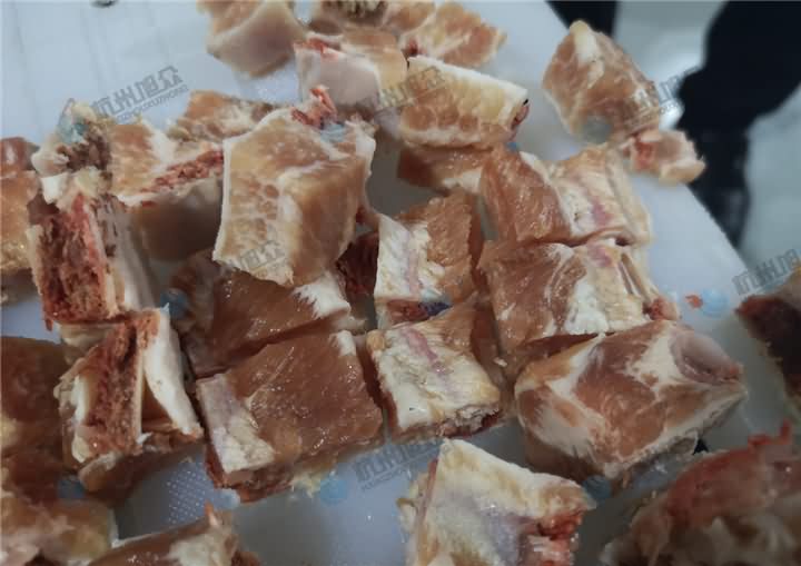 排骨可以選擇用禽肉類剁塊機(jī)剁塊嗎?可以的,小排,肋排都可以的哦,但是筒骨、豬蹄、大排等就不適合用剁塊機(jī)剁塊,得選擇自動(dòng)切骨機(jī)器。那么禽肉類剁塊機(jī)剁排骨塊效果: