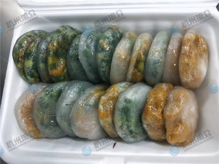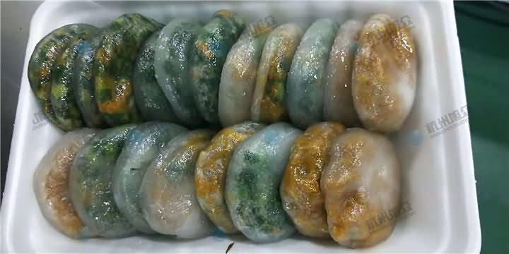 潮州陳老板帶料來廠考察XZ-88多功能包餡機,現場直觀包餡機生產粉粿過程,粉粿也是客戶想要的效果,潮汕經典小吃粉粿,旭眾多功能包餡機制作,包餡類米制品都可以做的哦!