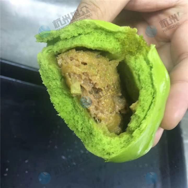 旭眾包子機可做包子和圓饅頭,如果還想做包餡方饅頭的話,那就需要在包子機基礎上改裝加刀切裝置,這樣就可以生產含餡方饅頭,那么我們來看看改裝包子機做的青汁包子饅頭效果: