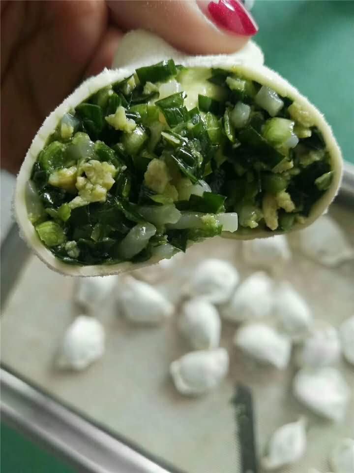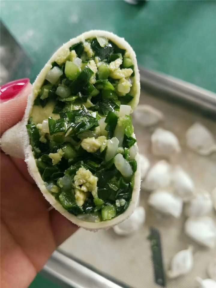 仿手工餃子機(jī)做韭菜雞蛋餡水餃效果