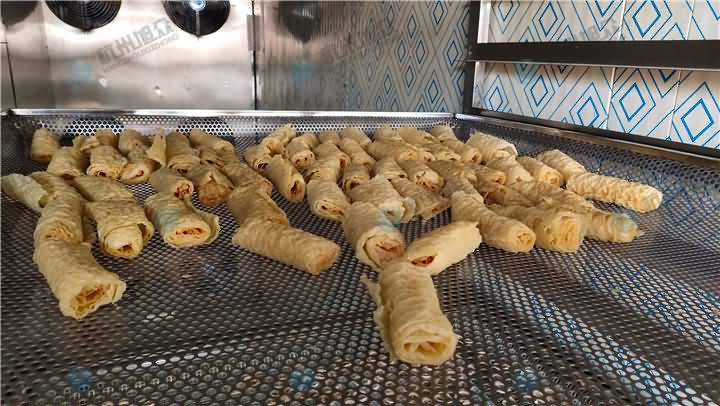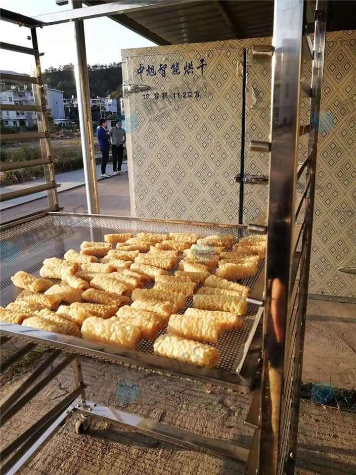 已經(jīng)炸好的豆皮卷如何烘干才好呢?旭眾空氣能烘干機(jī)為您解決煩惱,只需將炸豆皮卷平鋪擺放蒸車中,再推入進(jìn)烘干房內(nèi),設(shè)定好烘干時(shí)間,到時(shí)間烘干房自動(dòng)停止運(yùn)行,便可以看到烘干好的炸豆皮卷咯!