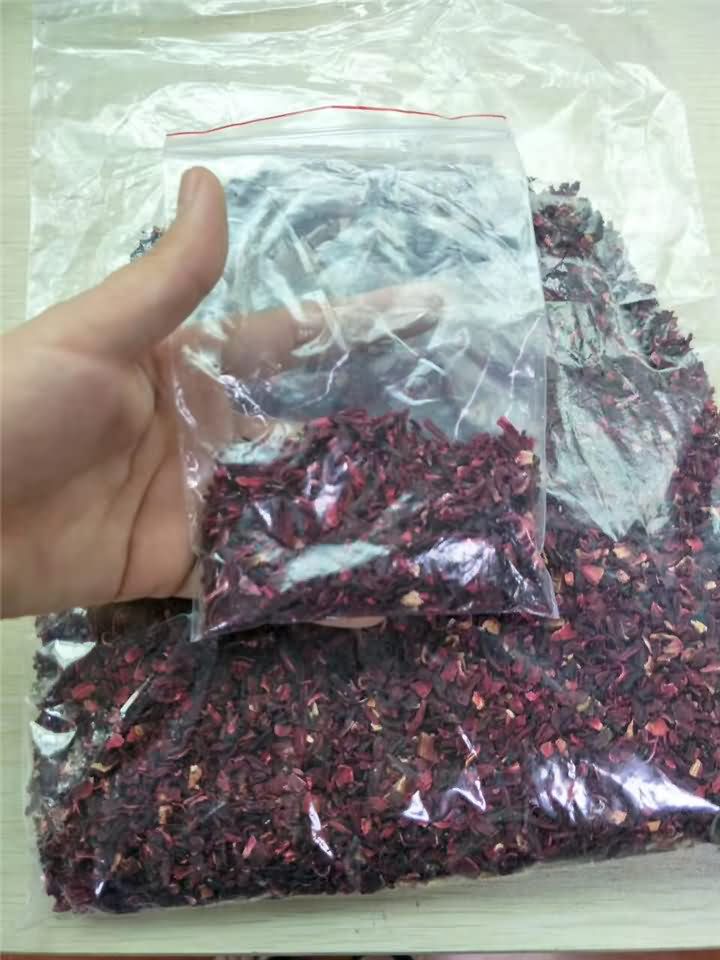 旭眾不銹鋼破碎機破碎篩網孔徑標配6mm或者8mm,另可定制10/12/14/16/18/20/30,一般不定制小于6mm的孔徑,遠在新疆的劉老板寄了他家烘干好的玫瑰花等物料來到現場,并直觀了用破碎機破碎后的效果: