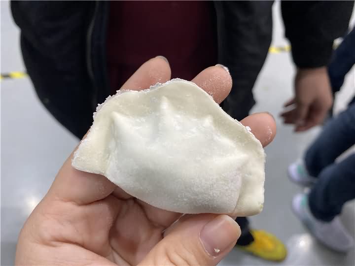 仿手工餃子機常規做出來的餃子帶褶仿手工效果: