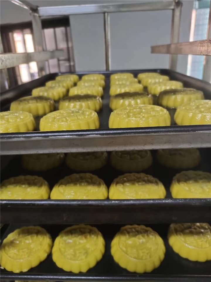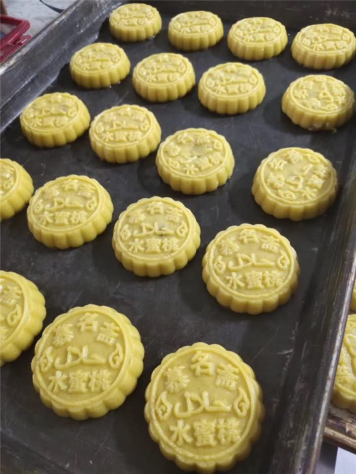 恭喜楊老板定購的一套月餅機設備生產水蜜桃月餅已調試完畢,?祝楊老板生意興隆,財源廣進!
