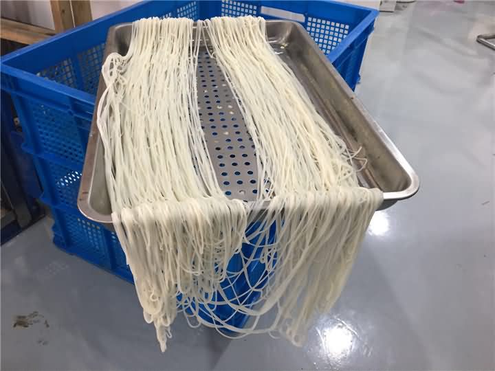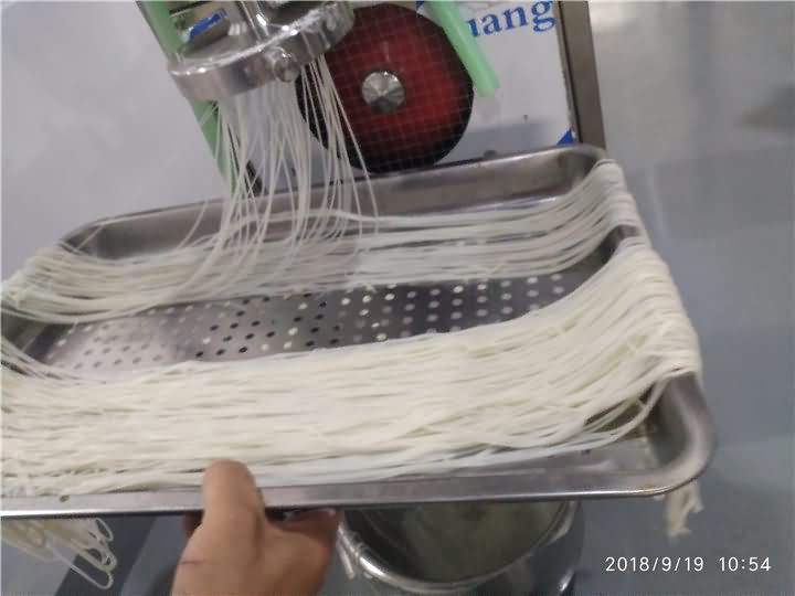 他來了,他來了,他帶著十幾斤的大米來到旭眾機械廠!劉老板開了個小型米粉加工廠,因買了多年的米粉機設備老化想換新設備,卻找不到原來的米粉機廠家,只能另尋新的米粉機設備,于是便找到了旭眾米粉機,在得知米粉機可以提供現場演示服務,在家泡了十幾個小時的大米,瀝水后便帶來到現場,劉老板現在不僅能看到米粉機還能看到合適的粉碎大米的機器,小型米粉機都是將米磨成漿,但因磨漿機因要售出原因不能提供試機,于是便先將大米粉碎成粉,再調成米漿,在做這些之前可以先將米粉機灌入水,開啟開關水燒開制100℃也是需要一段時間的,剛好做完這些工序的時候米粉機的溫度也差不多100℃,就能直接將米漿倒入米粉機,稍等片刻便可制出米粉。