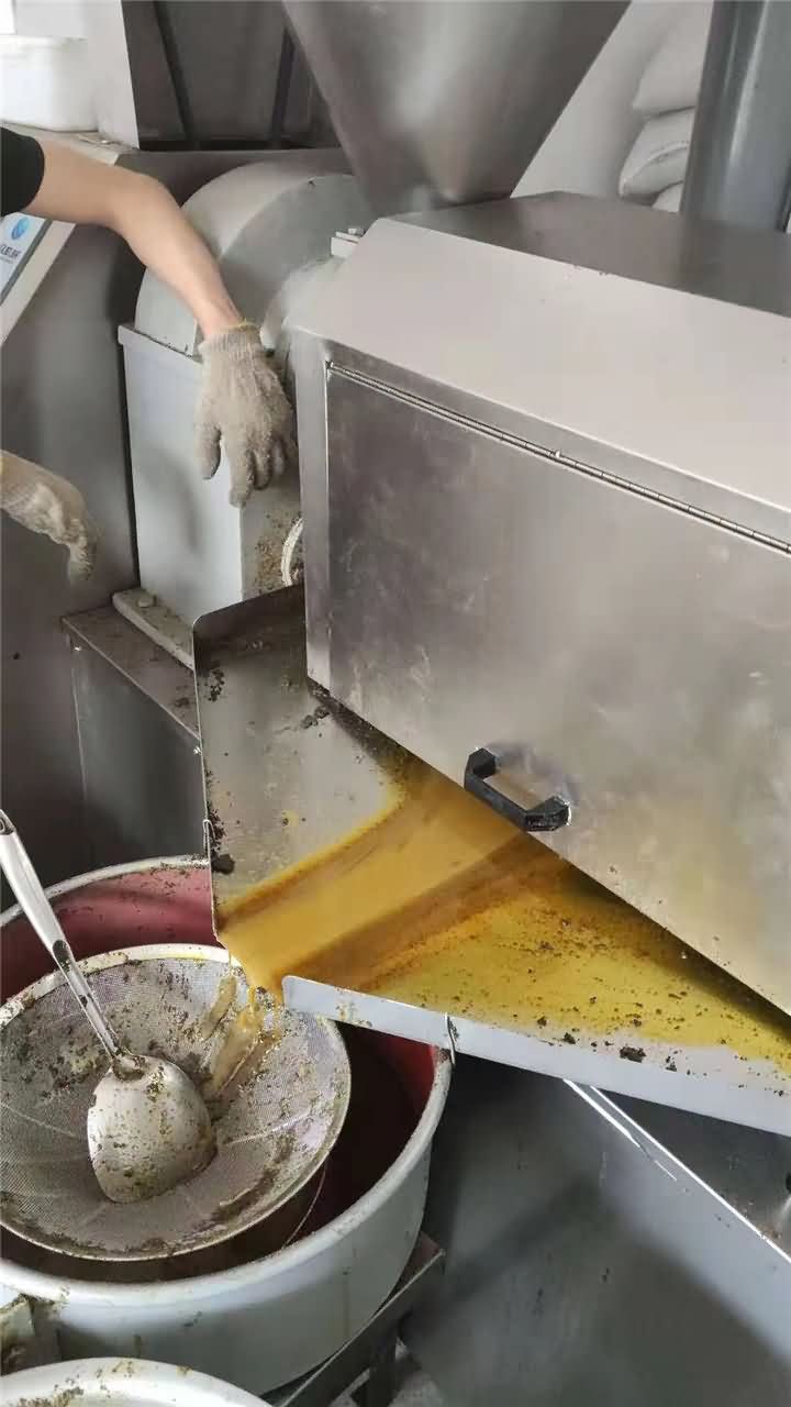 來自甘肅秦安趙老板定購XZ-Z518-4榨油機調試已完畢,他主要是生榨工藝,菜籽、胡麻榨三遍左右: