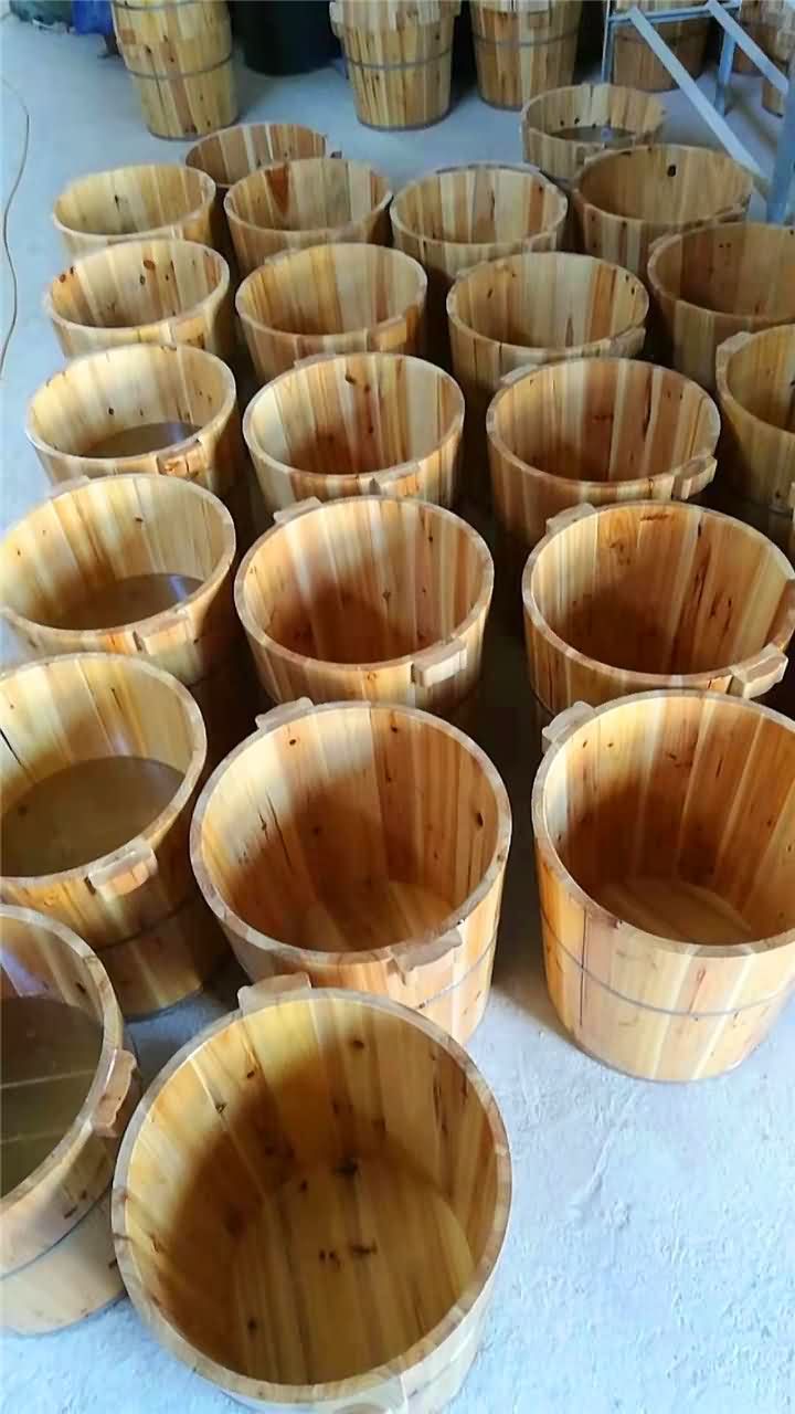 1﹞蒸煮的工藝顧名思義,就是把木材用來蒸煮。鍋爐里水加熱至沸騰,將材料放入之中,高溫蒸煮十二小時以上。起到脫脂,而且能殺死木質中的蟲卵。為什么材料要蒸煮:答:經過蒸煮材料,生產的木桶就不會產生脫脂狀態(桶表面出現的粘劑液體,稱為油脂),在長久使用中沒有蟲蛀現象。