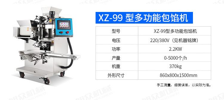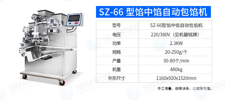 SZ-64型多功能自動包餡機采用臥式輸面輸餡系統,運行流暢,效率高。可生產豆沙、蓮蓉、五仁餡等較干餡料的包餡類產品,制出的產品餡、皮比例可任意調整,制品大小統一,外形美觀。