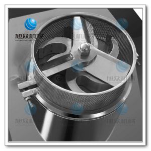 搖擺式顆粒機制得的顆粒一般粒徑分布均勻,有利于濕粒均勻干燥。它的主要特點為旋轉為旋轉滾筒的轉速可以調節,篩網裝卸容易,還可適當調節其松緊。機械傳動系統全部密封在機體內,并附有調節系統,提高了機件的壽命。但由于成粒過程是由滾筒直接壓迫篩網而成粒的,物料對篩網的擠壓力的摩擦力均較大。使用金屬篩網時易產生金屬污染處方,而尼龍篩網由于容易破損需經常更換,在使用時應加以注意。